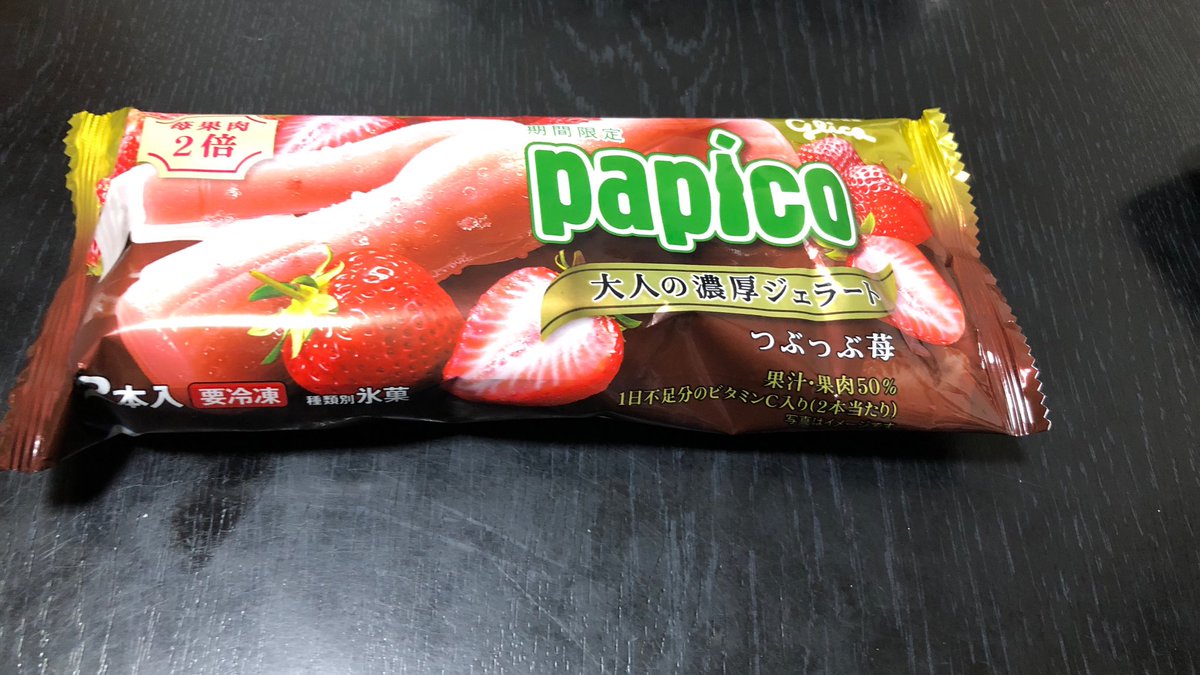 こたつに入って食べるパピコ美味しいよ〜つぶつぶ苺