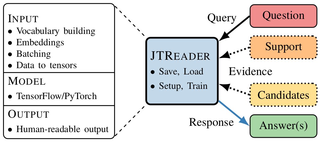 We just released Jack the Reader - A Machine Reading Framework that allows for quick model prototyping via component reuse, and easy evaluation on new and existing datasets: https://arxiv.org/abs/1806.08727