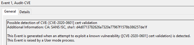 @DidierStevens If you want to do the same thing in PowerShell, here's a short script that will generate the event in Windows Event Log, Application - great for blue teams to test detection: https://pastebin.com/yusYHYHL@sans_isc#cryptoapi#microsoft#BlueTeam https://twitter.com/johullrich/status/1217538002513211392 …pic.twitter.com/5A5AAbKpEL