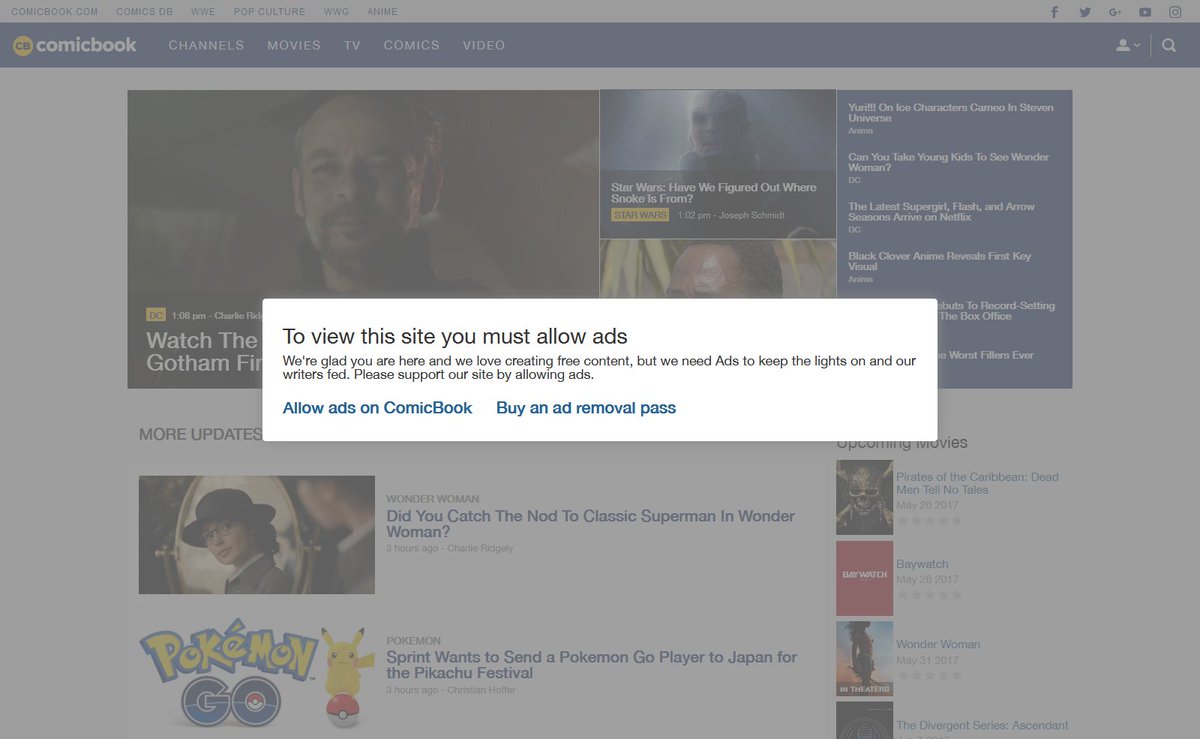 Google's anti-adblocking is up! Some sites will give adblock users no close buttons. Google: pay a fee per page or whitelist.pic.twitter.com/wkNNquQJys