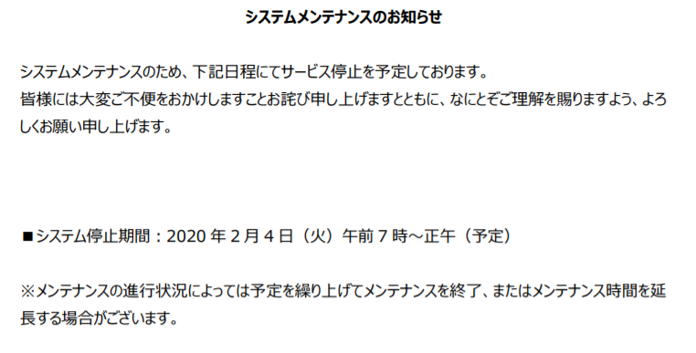 メンテナンスのお知らせ