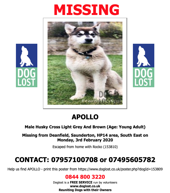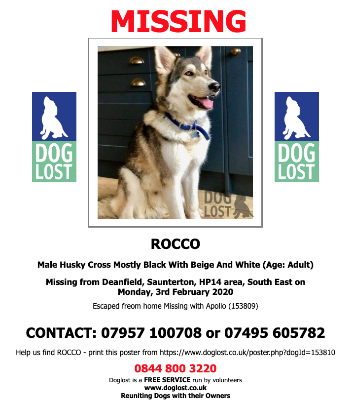 #LOST#DOG ROCKO Male#Husky Cross#Missing with APOLLO Deanfield#Saunterton, HP14 Monday, 3rd February 2020#LostDog#ScanMe https://doglost.co.uk/dog-blog.php?dogId=153810 …@VetsGetScanning@SAMPAuk_@Find_Roxypic.twitter.com/ihJZIpOEAb