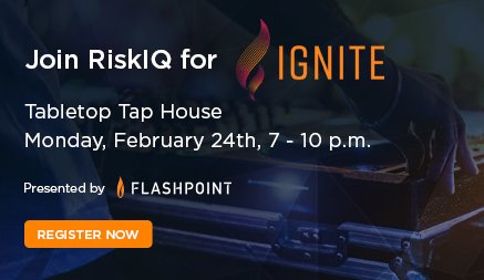 #RSAC 2020? You're invited to party with RiskIQ at IGNITE, hosted by@FlashpointIntel! RSVP today: https://bit.ly/2R1SPJe pic.twitter.com/wUlhBbOzMe