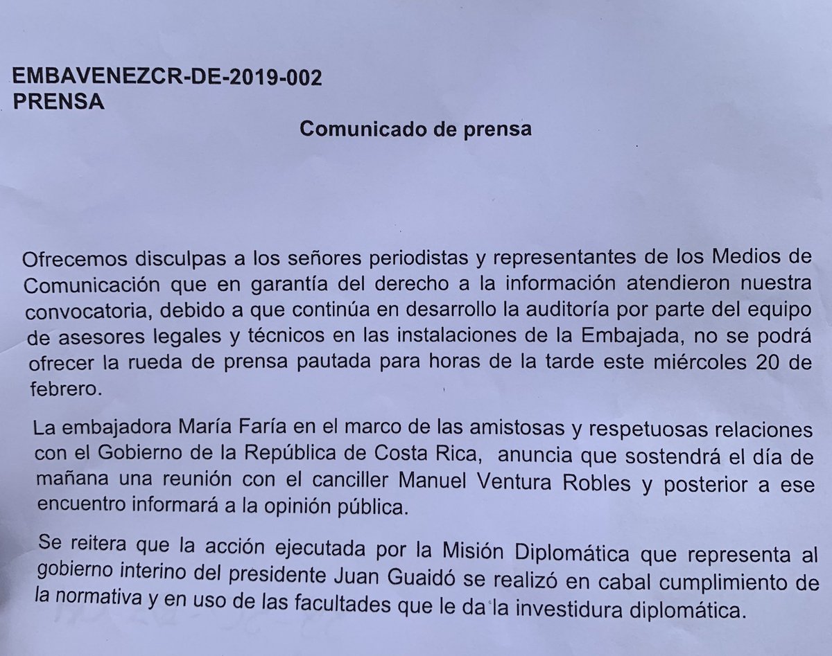 La diplomática designada por Guaidó y el canciller Manuel Ventura sostendrán una reunión mañana jueves para discutir sobre los hechos ocurridos hoy en la embajada de Venezuela en Costa Rica, así lo anunció uno de los representantes de Faría. @SemanarioUpic.twitter.com/IsyDR9ngl7