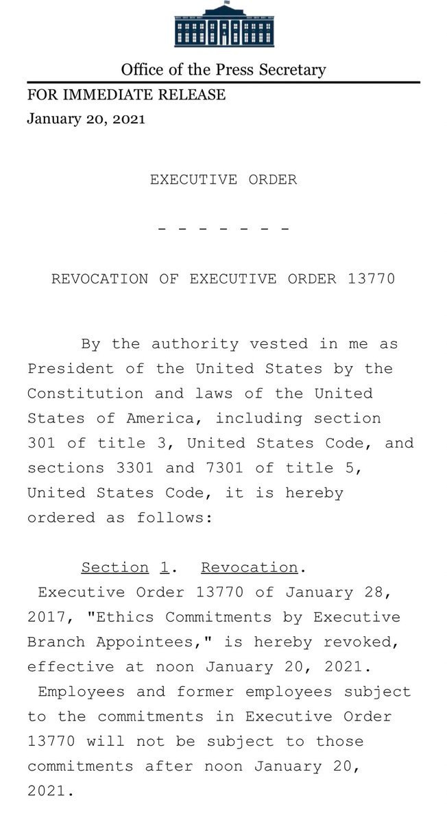 Trump revoked the ban on staff not being allowed to be lobbyists for 5 years after working in his administration h/t Fipi Lelepic.twitter.com/mAPKfQyXqX
