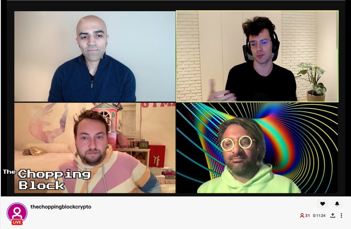 Only 31 people??? Cmon people! Join on twitch! https://www.twitch.tv/thechoppingblockcrypto … Featuring: