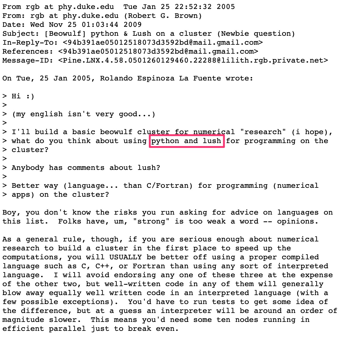 #python for scientific computing in a be#beowulf mailing list.#numpy didn't existed by that time :D How far#python has come to become a mainstream language. Now I wonder which one would be the next decade's.pic.twitter.com/cAgvkdTIkdOvo je potencijalno osjetljiv multimedijski sadržaj. Saznajte više