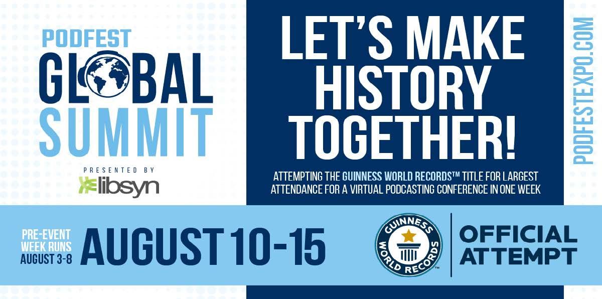 Help create podcast history! Join the Podcast Global Summit free today. Attempting to set the GUINNESS WORLD RECORD for the largest virtual podcast summit. Less than 200 more guests will do it. https://bit.ly/2PRceLD Excellent speakers.