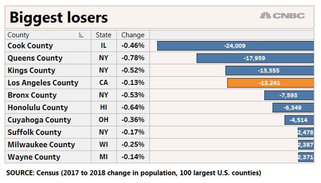 Top 10 resident loss commonality? Run by Dems, voted Dem in ‘16 or ‘18. Cook - Hillary 74% Queens - Hill 75% Los Angeles - Hill 71% Bronx - Hill 89% Honolulu - Hill 61% Cuyahoga - Hill 65% Suffolk - Dem ‘18 Milwaukee - Hill 70% Wayne - Hill 66% Their policies are destructive.pic.twitter.com/gBqQ9N4q9w