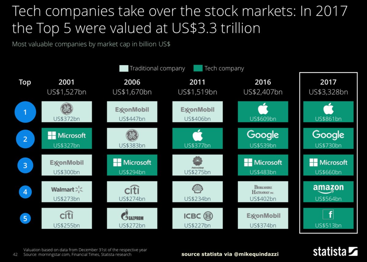 @mikequindazzi#Tech is eating the world!@StatistaCharts via@MikeQuindazzi Hashtags#mobile#cloud#socialmedia#virtualassistants#ecommerce#fintech#iot#cloudcomputing Top 5#Apple#Google#Microsoft#Amazon#Facebookpic.twitter.com/smi28bYWpX