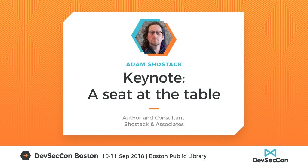 #DevSecCon Boston keynote! Take ‘A seat at the table’ with@adamshostack - book you place here https://buff.ly/2vNU8Tz#Threat Modelingpic.twitter.com/hvuoBsACxi