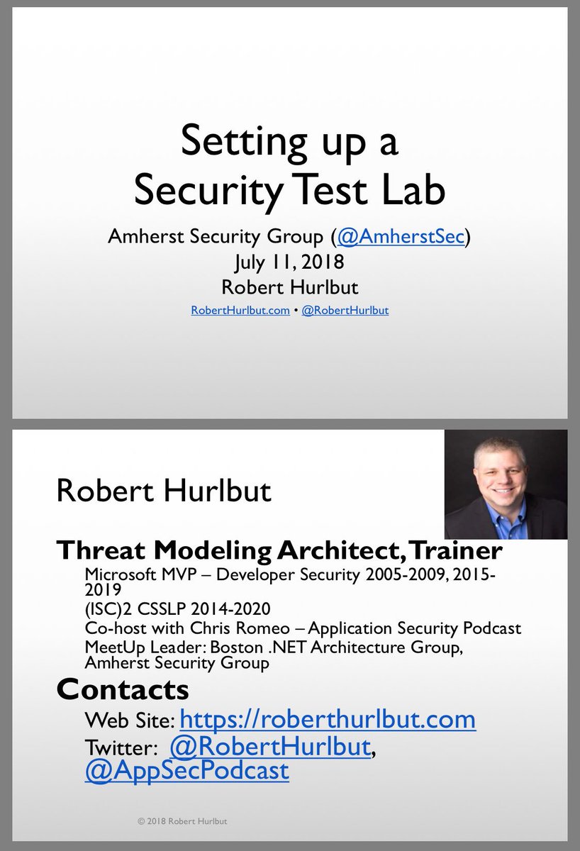 Slides from the “Setting up a Security Test Lab” talk on 7/11/2018 by