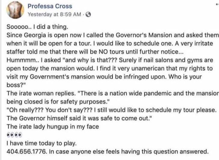 @GovKemp know how you feel about his intentionally endangering workers & shopkeepers but not himself. (404) 656-1776https://twitter.com/robhuebel/status/1254185183667843072?s=20 …