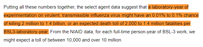 "...a laboratory-year of experimentation on virulent, transmissible influenza virus might have an 0.01% to 0.1% chance of killing 2 million to 1.4 billion, or an expected death toll of 2,000 to 1.4 million fatalities per BSL3-laboratory-year."https://twitter.com/XiXiDu/status/1221090241165123585 …
