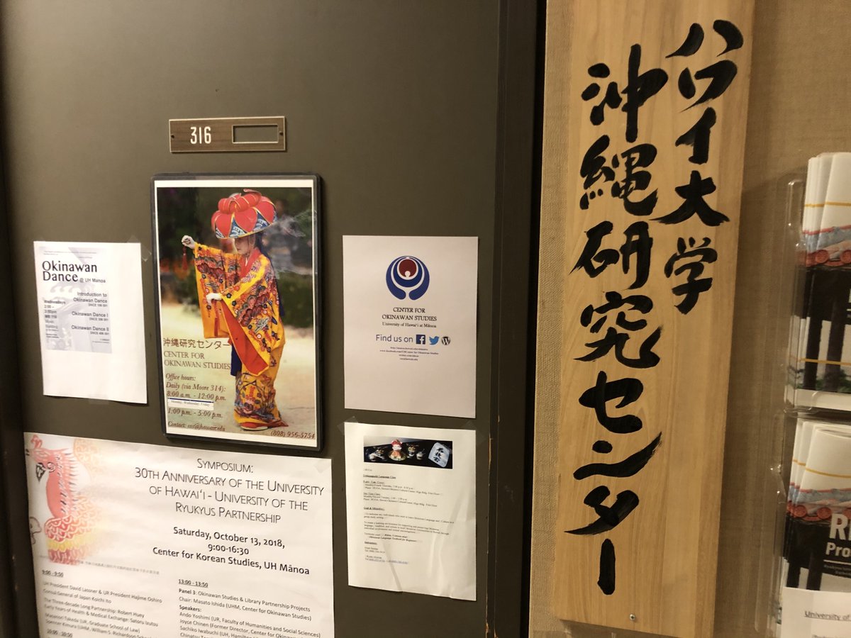The Center for Okinawan Studies at the University of Hawaii at Manoa. They have brochures about Ryukyu independence and the military base issues on display.