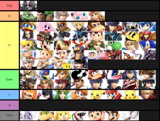 Here it is I don't think he really destroys the lower tier characters that hard tbh Wolf is top 10 around 6-7 He has no -2 mus and all his losing MUs are very doable MY O P I N I O N Up for discussion ofcpic.twitter.com/JS4nza4vsk
