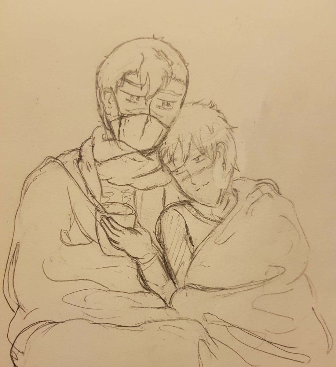 day 22 hot drinks. Shiro has a little something on his nose from the hot chocolate, Lance will probably lick it off after he stops laughingpic.twitter.com/9CSNcSUePZ