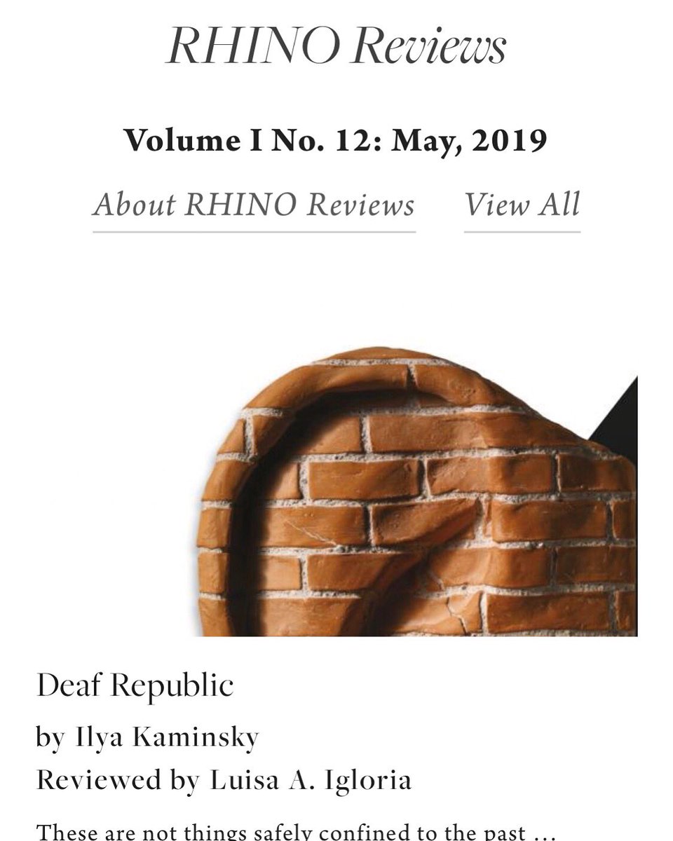 @rhinopoetry Reviews! Feat. new books by@ilya_poet@nascenters@robottomulatto@JenniferMoxley@AliciaMountain@lady_bronte@ohmary11 &more, reviewed by@ThePoetsLizard@emilytheperez@mayaamarshall@Naoko_Fujimoto@djvorreyer &others! https://rhinopoetry.org/reviews-may-2019 …pic.twitter.com/HXZ0cui1BN