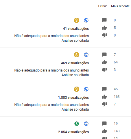 ok isso eu sei.!! porem fica amarelo de todo geito não listado publico, privado , programado. do geito que eu colocar ele sempre fica com o simbolo amarelo. o simbolo so desaparese quando eu solicito manualmente para um revisor analisar, o conteudo 100% adecuado. ufff