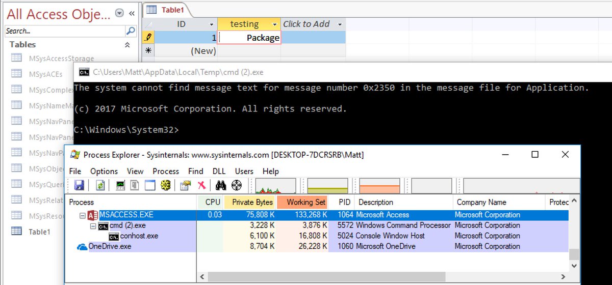 Windows Defender Exploit Guard's Attack Surface Reduction Rule: Block Office applications from creating child processes MS Access: