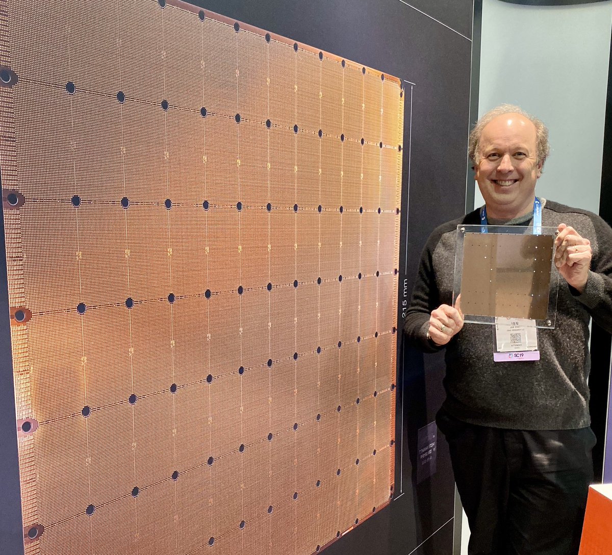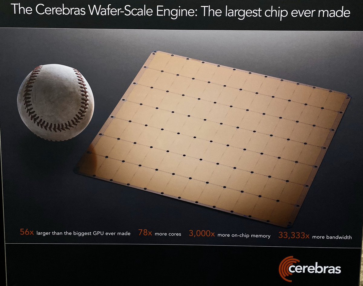 #SC19 Goodbye Denver. Parting trillion transistor selfies.@Cerebras Wafer-Scale Engine. https://insidehpc.com/2019/08/cerebras-systems-unveils-the-industrys-first-trillion-transistor-chip-for-ai/ … 400,000 cores x 48 KB SRAM. All that and still only 16nm process. The best is yet to come.pic.twitter.com/Gjr9CEWUms