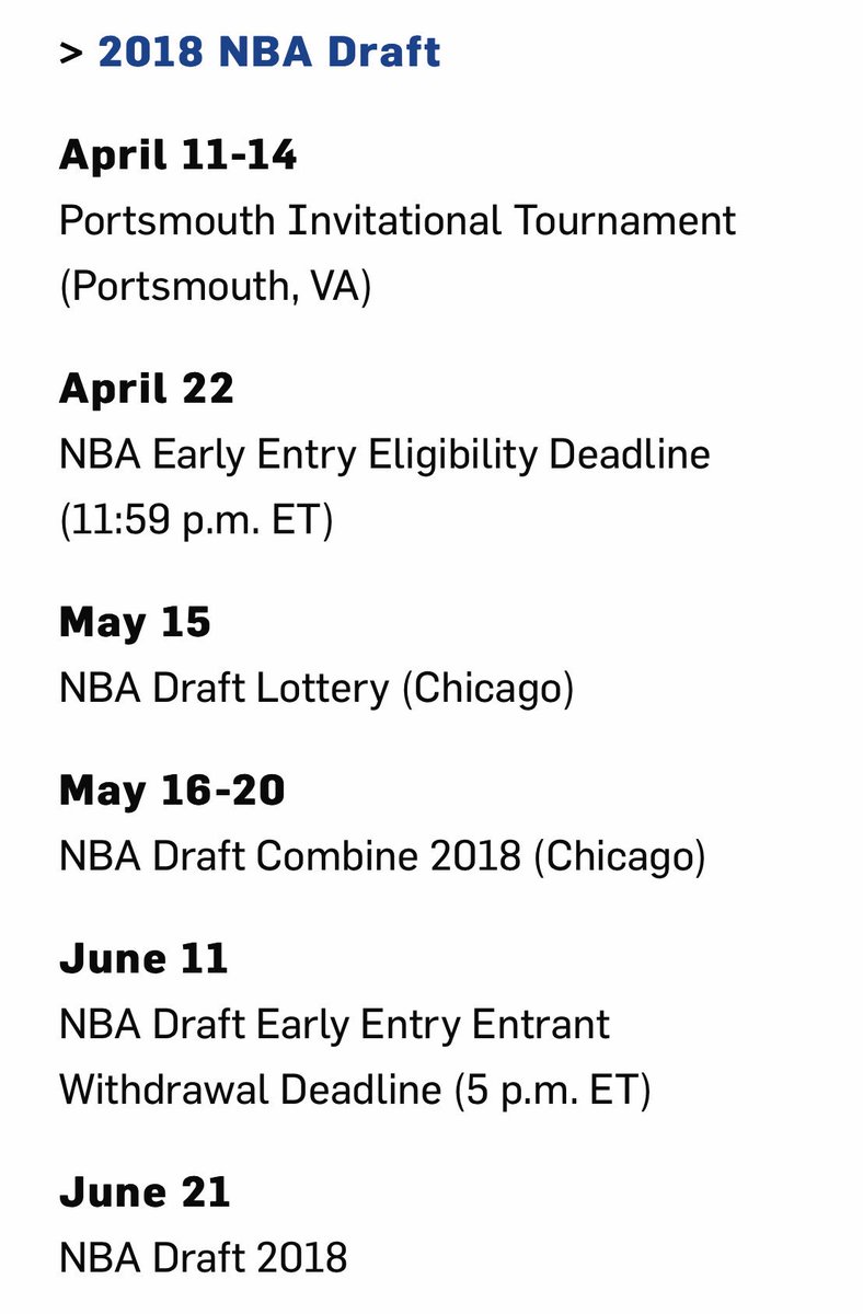 Key dates to know for the 2018 NBA Draft http://www.nba.com/article/2018/01/23/2018-nba-draft-important-dates-know …pic.twitter.com/4rVMTotDsQ