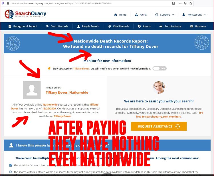 You’ll also get the same four Tiffany Dovers in Alabama if you search for literally any other kind of record besides “death”, including birth, arrest, bankruptcy and incarceration. They just want you to pay money BEFORE they let you know that no such record exists.pic.twitter.com/4I4c5LkBp8