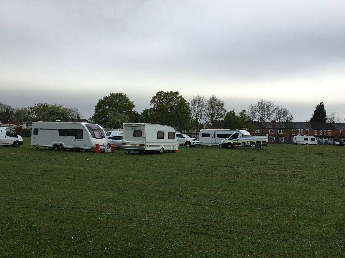 Travellers on Acocks Green Recreation Ground this morning. @AcocksGreenWMP and @BhamCityCouncil enforcement are aware and on the case.pic.twitter.com/dSr6kkGIWU