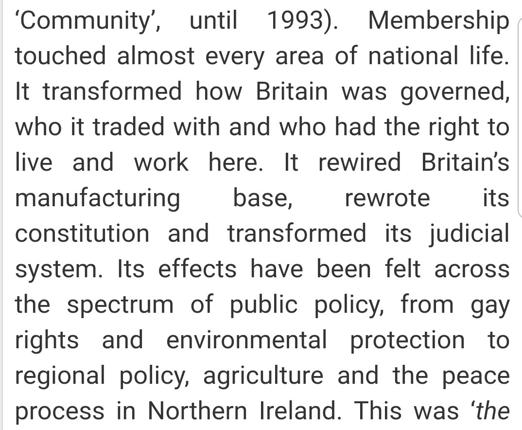 We are also reminded (perhaps almost inadvertently?) why membership was so controversial. In short, its effect was deep and profound. The claim that the EU only impacted about 15% of laws did not do justice to the situation, which is why Leavers scoffed at the figure.pic.twitter.com/Mxv5f2PjmX