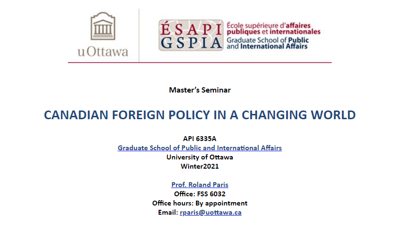 Canadian Foreign Policy syllabus for this semester. Also an MA seminar. http://aix1.uottawa.ca/~rparis/API6335_winter2021.html …pic.twitter.com/UHTGq5nJrA