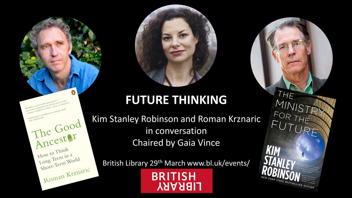 @britishlibrary I'm doing an event with one of my great heroes, sci-fi author Kim Stanley Robinson. What questions should I ask him in our conversation? Chaired by the brilliant@WanderingGaia Please join us https://www.bl.uk/events/future-thinking-kim-stanley-robinson-and-roman-krznaric …pic.twitter.com/sgSLSBrL0R