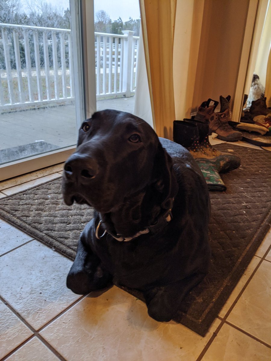 My protector floofs are doing what they're supposed to: protecting the house from danger Tonight's danger: some a-hole using a circular saw at midnight. Hawkeye bravely woofed from the doorway and confronted the danger from 2 feet behind me. He's trying...