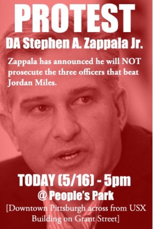 Protest at 5 PM at People's Park in downtown Pittsburgh for Jordan Miles. Police brutality for real.pic.twitter.com/iDk4jcqR