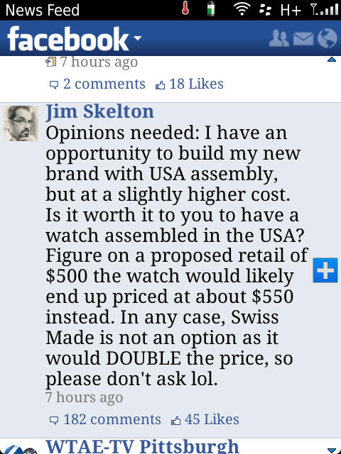 “@Lunchb0x48: @watchlord Jimmy wants to know "Is made in the USA worth it to you?" pic.twitter.com/Kb9sYCe1” @Dwatchguy // In Fl? it's Invicta!