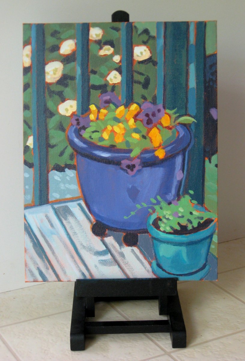 "Big Pot of Pansies" plein air painting, acrylic 12" x 9".pic.twitter.com/DjbahHkl37