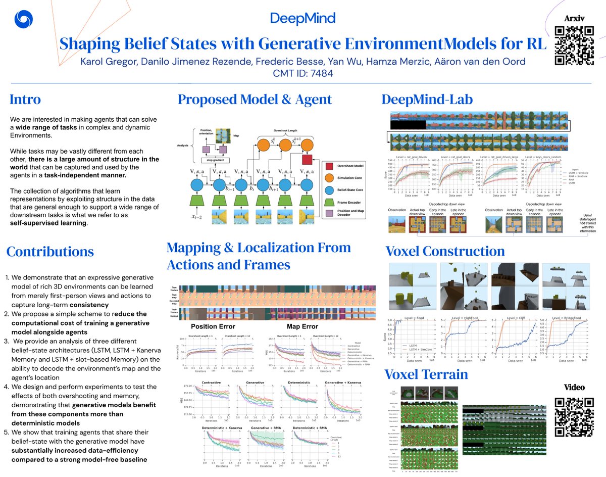 #NeurIPS2019 and want to discuss generative models, overshoot, memory and RL? Come see our poster on Thursday! "Shaping Belief States with Generative EnvironmentModels for RL" East Exhibition Hall B + C #234pic.twitter.com/WkJOZ8QWAO