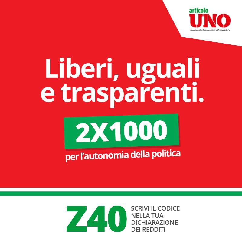 Un gesto che non ti costa niente ma rende la democrazia più forte. Scrivi Z40 e firma nella dichiarazione dei redditi per destinare il tuo 2x1000 ad Articolo 1 per Liberi e Uguali. Aiutaci a far conoscere il codice Z40. Grazie.pic.twitter.com/j3Raw6KavS