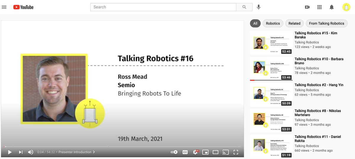 #HRI in#Healthcare w/ Mike Dooley, Co-founder and CEO at Labrador Systems Jillian Greczek, Senior Software Engineer@cataliahealth Dr. Stefan Scherer, CTO@EmbodiedInc Moderator:@RossMead, Founder and CEO at Semio & Vice President at AI LAhttps://youtu.be/_XRCAMf9EDQThanks. Twitter will use this info to make your timeline better. UndoUndo -