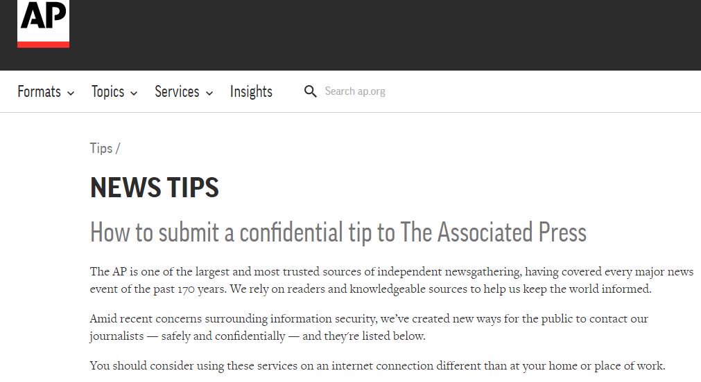 @AP has several secure ways to reach us anonymously with tips, stories and information: http://apne.ws/2lgNe2p pic.twitter.com/2s5RtjLz4f