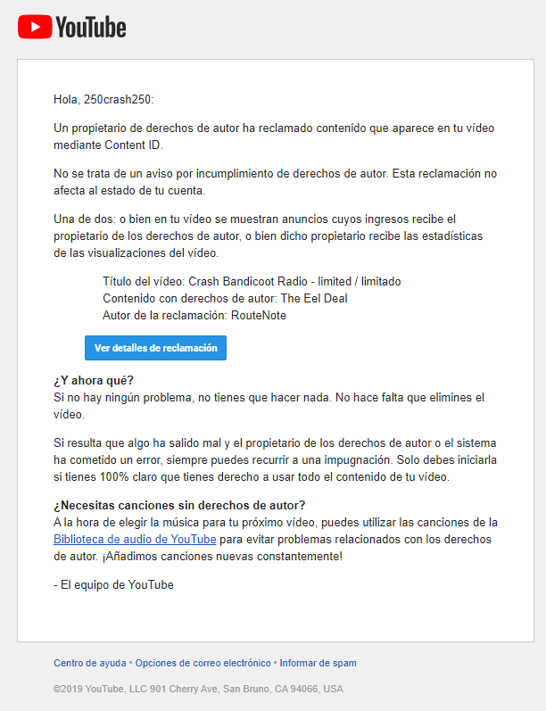 El Content ID fallo @routenote @TeamYouTube Ayuda con esto.
