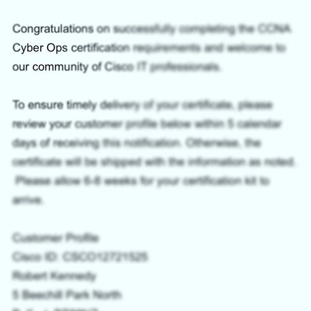 #CCNA#cyberops course completed. Now onto#SECOPS exam prep. Really enjoyed this course and have to say thanks to@cisco for the scholarship place. I’ve definitely learned a lot. For anyone else taking this course I would reccomended investing in the@l… https://ift.tt/2GoJFlF pic.twitter.com/XZDnWYQwMG