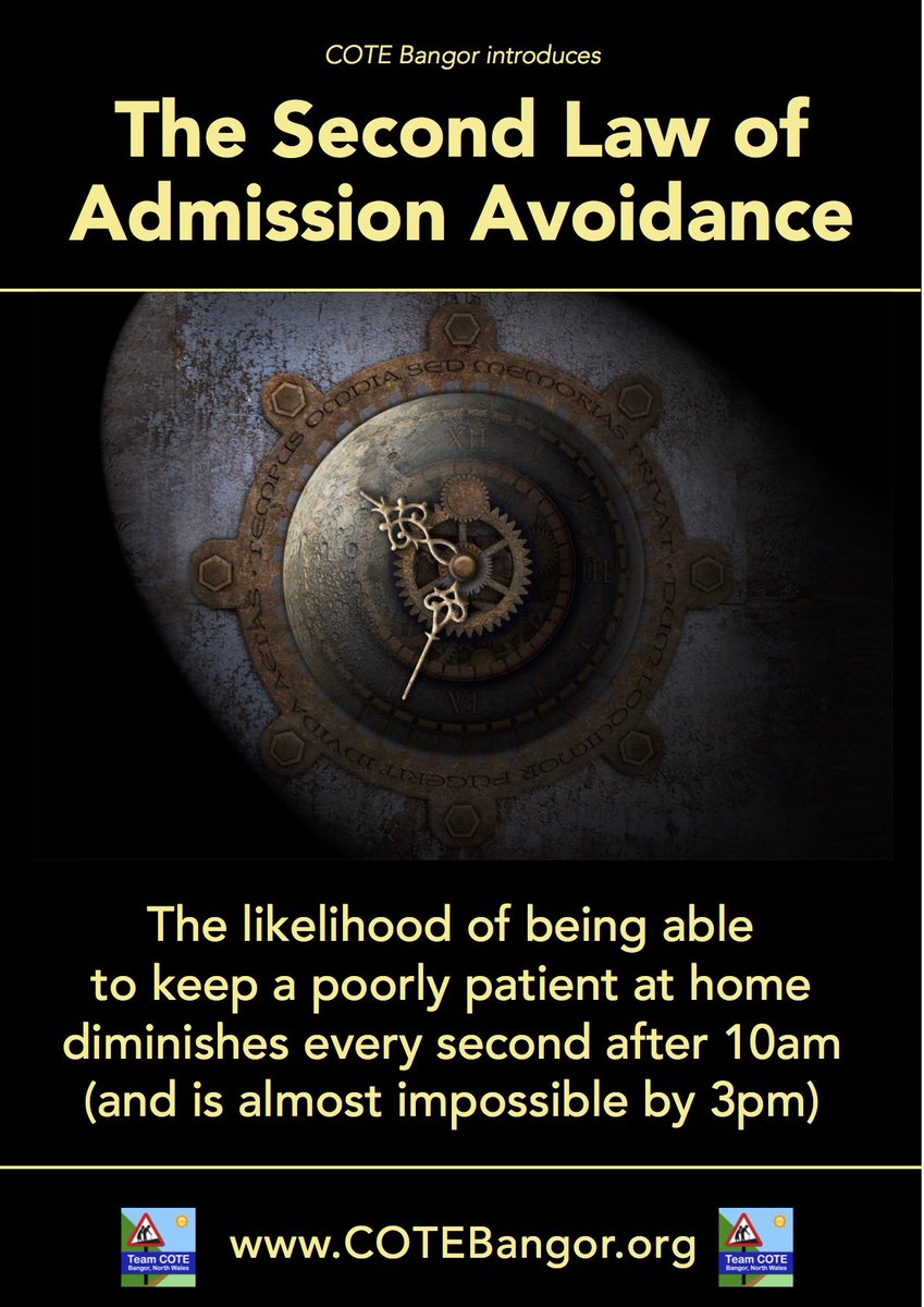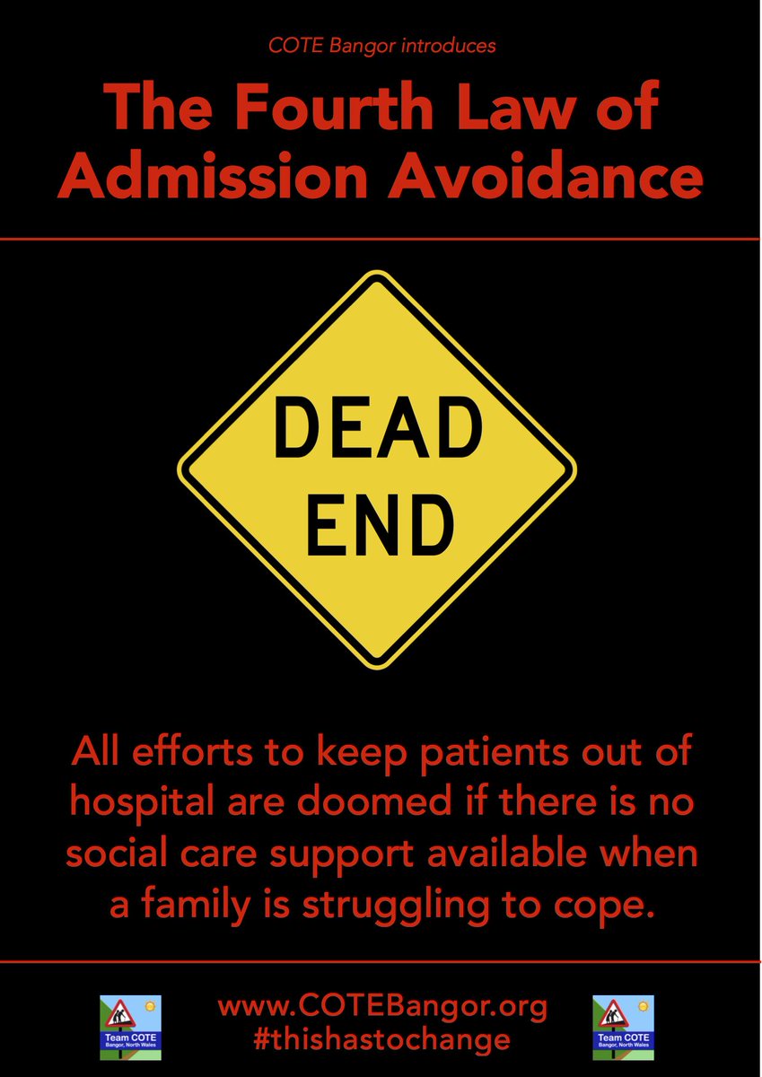 @COTEBangor Fourth Law of Admission Avoidance... without access to home carers to support families, many (if not most) Admission Avoidance efforts end up pissing in the wind.#ThisHasToChange#SocialCareHoldsUpTheNHSpic.twitter.com/mYfanWaF00