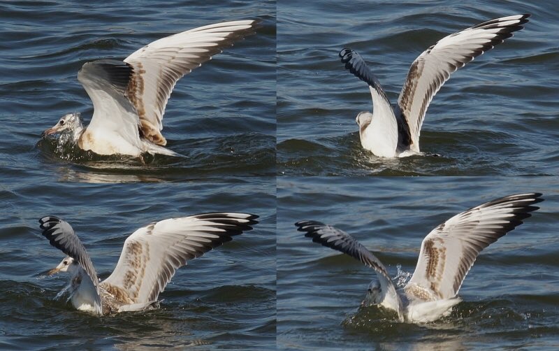 Four juvenile Black-headed Gulls at Den Oever, the Netherlands – note variation in outer primary pattern.