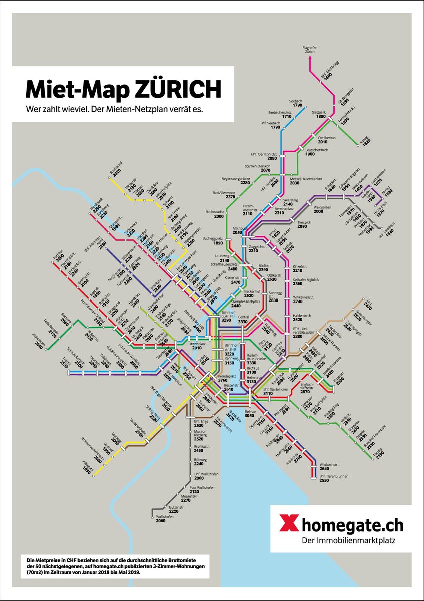 Picture 1: A map of Zurich's tram network with the price of housing at each stop. Picture 2: A map of Leeds' tram network with the price of housing at each stop. The two cities have the same population.pic.twitter.com/AZKXLpmg2z