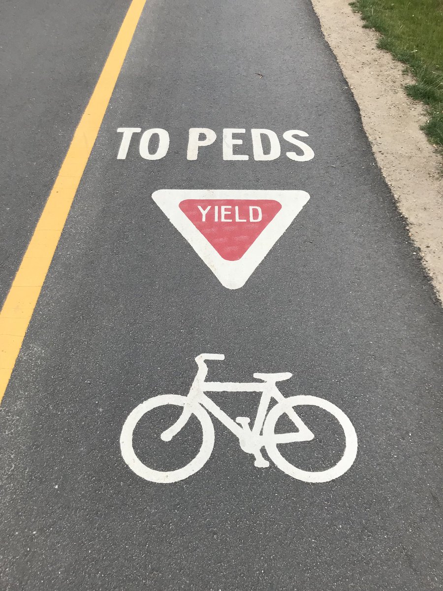 Confusing UX: is this saying “To peds: yield cyclists” or “Cyclists: yield to peds”?