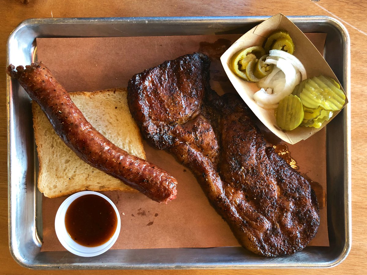 @SouthsideBBQ couldn’t be much more different than the Elgin original, but the sausage wrap is still one of the best you’ll find in Texas, and the whole, boneless pork steak (it’s on the thinner side) is still a heck of a deal. This one was $8.50.pic.twitter.com/cYM7Y2pK8M – mjesto: Southside Market & Bbq