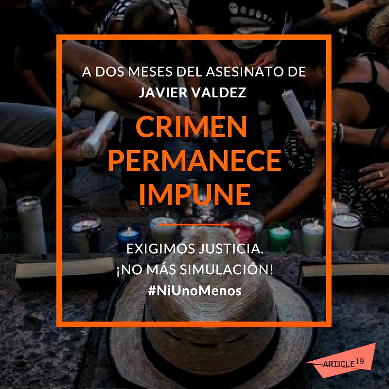 A dos meses del asesinato de Javier Valdez, las autoridades no arrojan avances contundentes en la investigación.