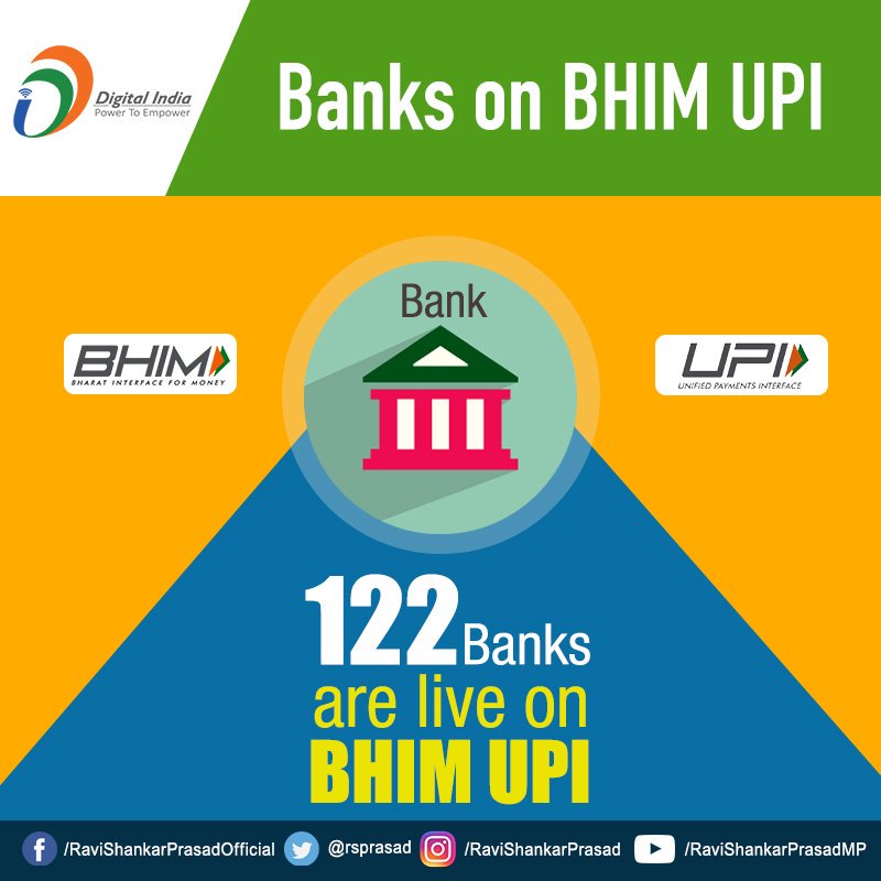 122 banks are offering digital payment services on BHIM-UPI platform. This innovation has gained wide acceptance among the users and financial institutions across India. #DigitalIndiapic.twitter.com/XEaoLH3mto