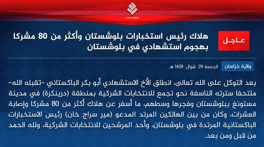 We call on the Afghan government to stop supporting and harboring BLAs, TTPs, PTMs and dismantling their headquarters.