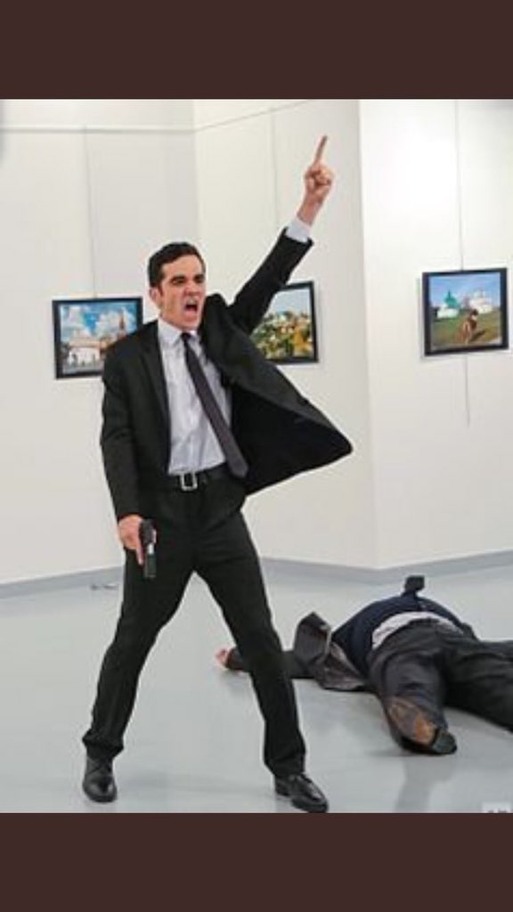 يجب معرفة من أمره بقتل سفير روسيا ؟؟ من أسفل الهرم الى أعلاه ؟؟ لا يرضينا قول انه قتله محبته في السوريين..!! لأننا نعلم ان الدواعش دخلوا سوريا من الاراضي التركية ... والدواعش هم من قتلوا السوريين.. من سمح دخول الدواعش لسوريا هم القتلة ..!